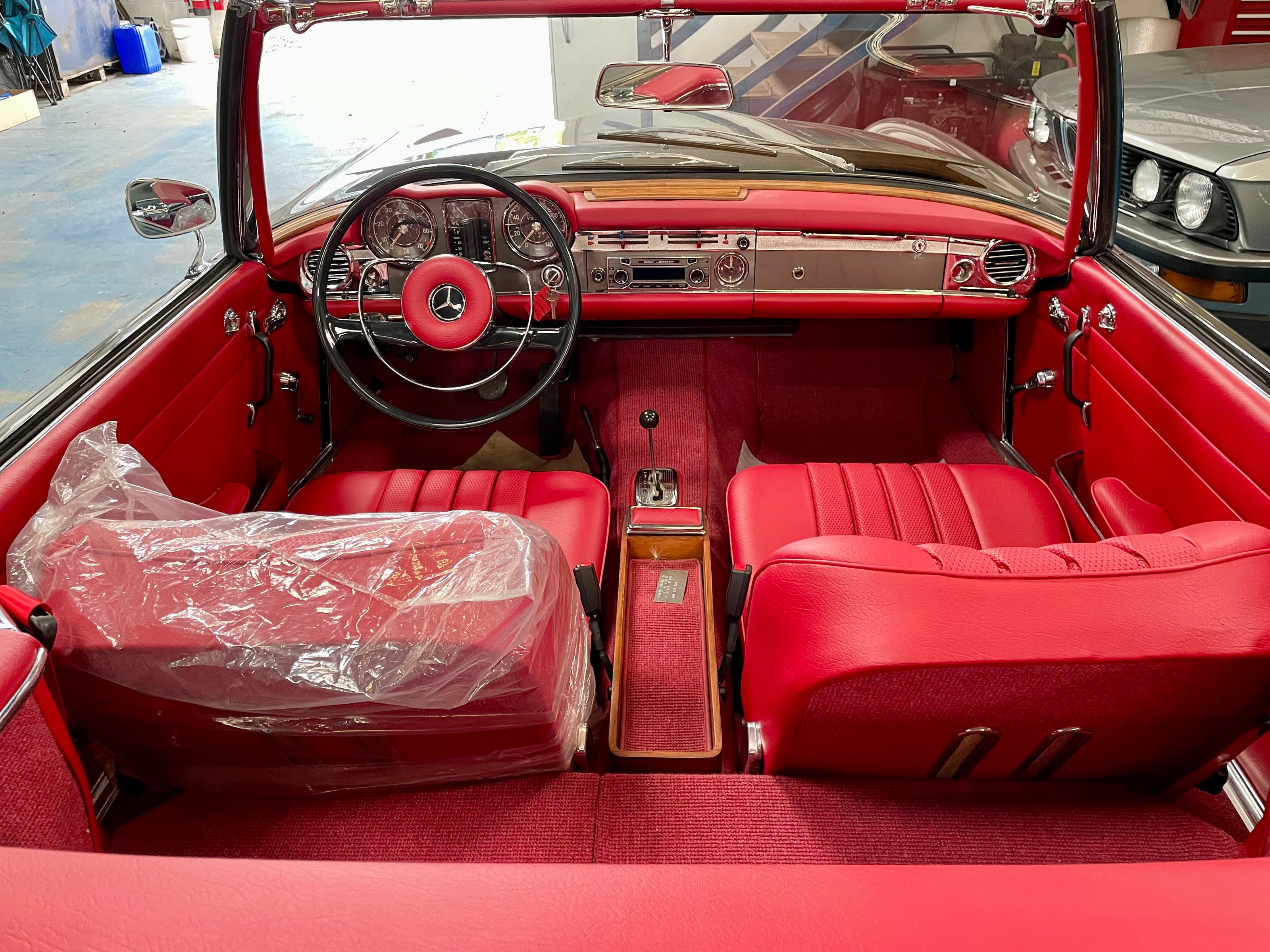 Original MB Tex seat cover or leather replacments sourced and upholstered. Door cards, vinyl upgrades, and original loop carpets replacement. All true to the originalfactory spec.